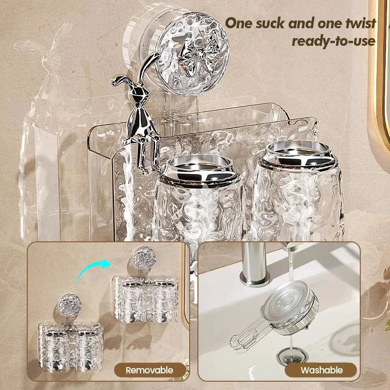 Bathroom Toothbrush Holder Wall Mounted Non Perforated Suction Cup Storage Rack Toothbrush Set Storage Rack