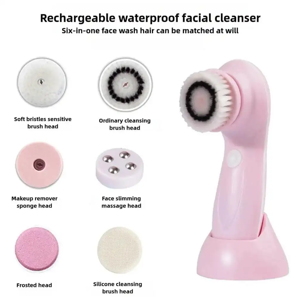 6-in-1 Electric Facial Cleanser Multifunctional Rotating Massage Face Brush, Pore Cleanser For Blackhead Removal