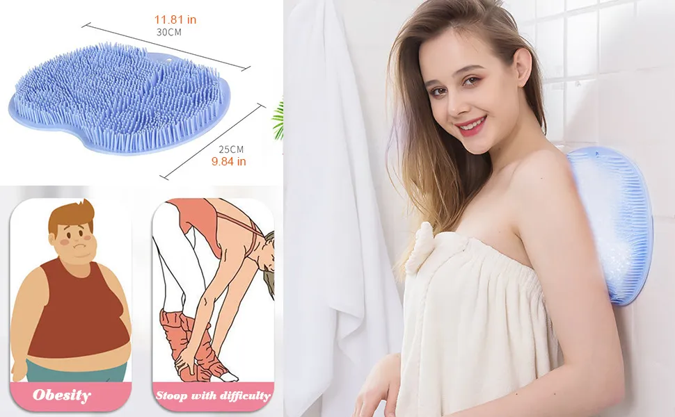Shower & Foot Scrubber Bathroom Wall Mounted Back Scrubber Silicone Bath Massage Cushion Brush With Suction Cups