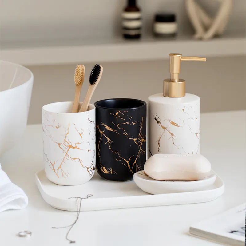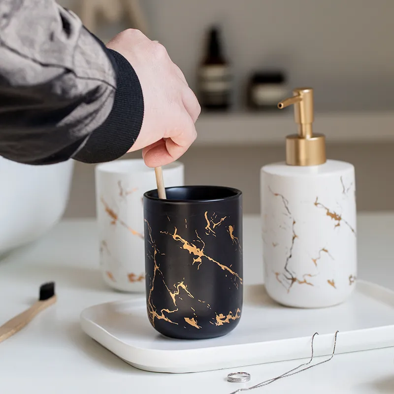 Ceramic Textured Mouthwash Cup Toiletry Set, Portable Bathroom Set, Home Goods