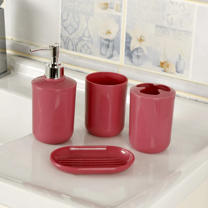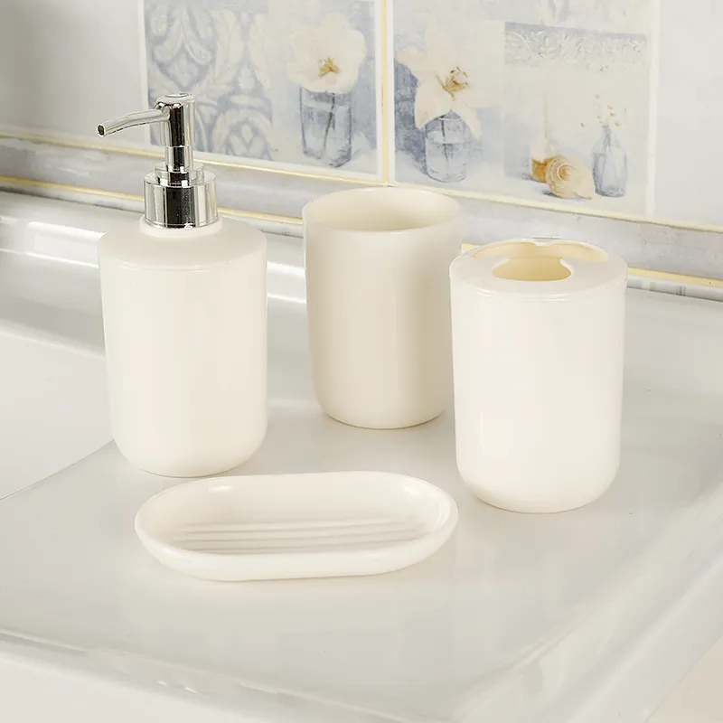 4Pcs/Set Bathroom Accessories Plastic Toothbrush Holder Cup Liquid Soap Dispenser Soap Dish Set Home Decoration