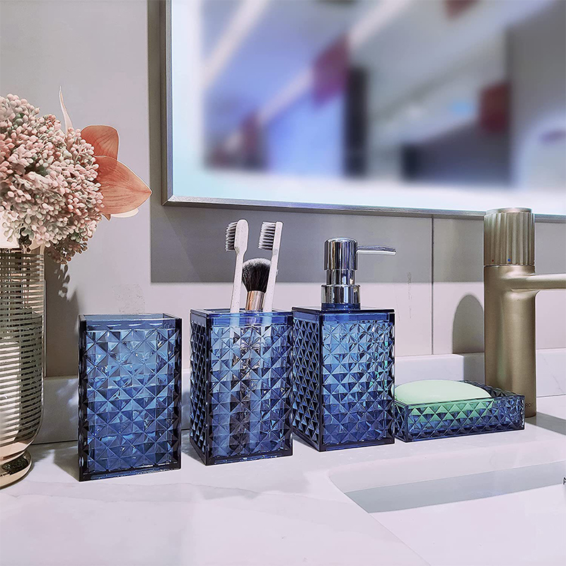Bathroom Four-Piece Set, Including Toothbrush Cup And Pump Dispenser, For Organized Storage