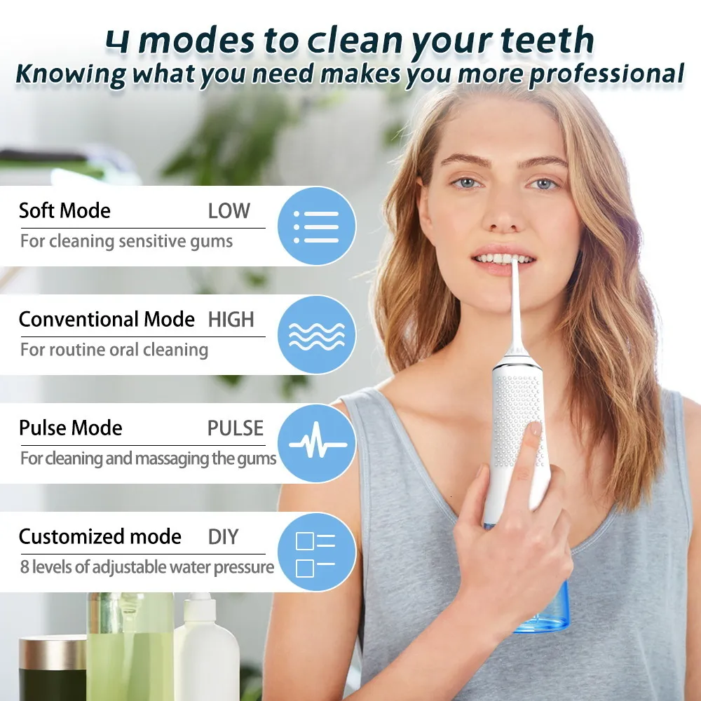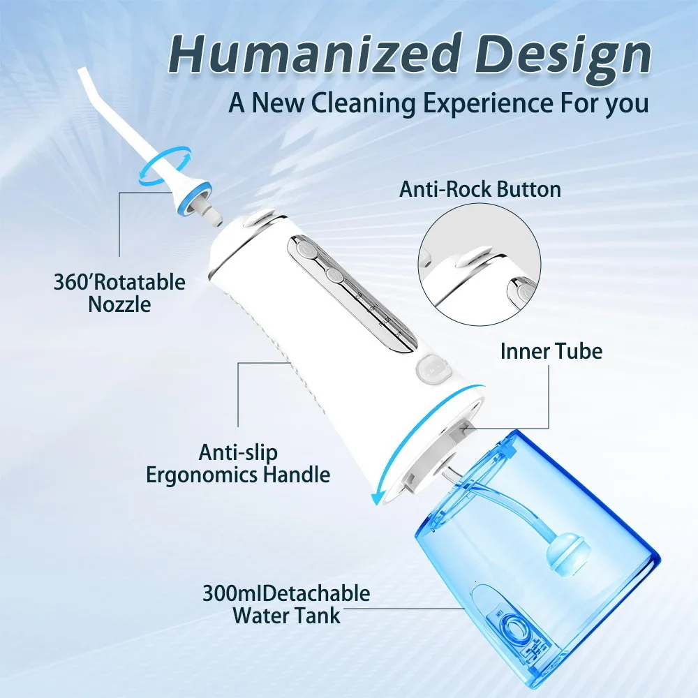 Oral Irrigator Dental Water Flosser Teeth Waterproof Portable Dental Water Jet Floss 300ml Teeth Cleaner