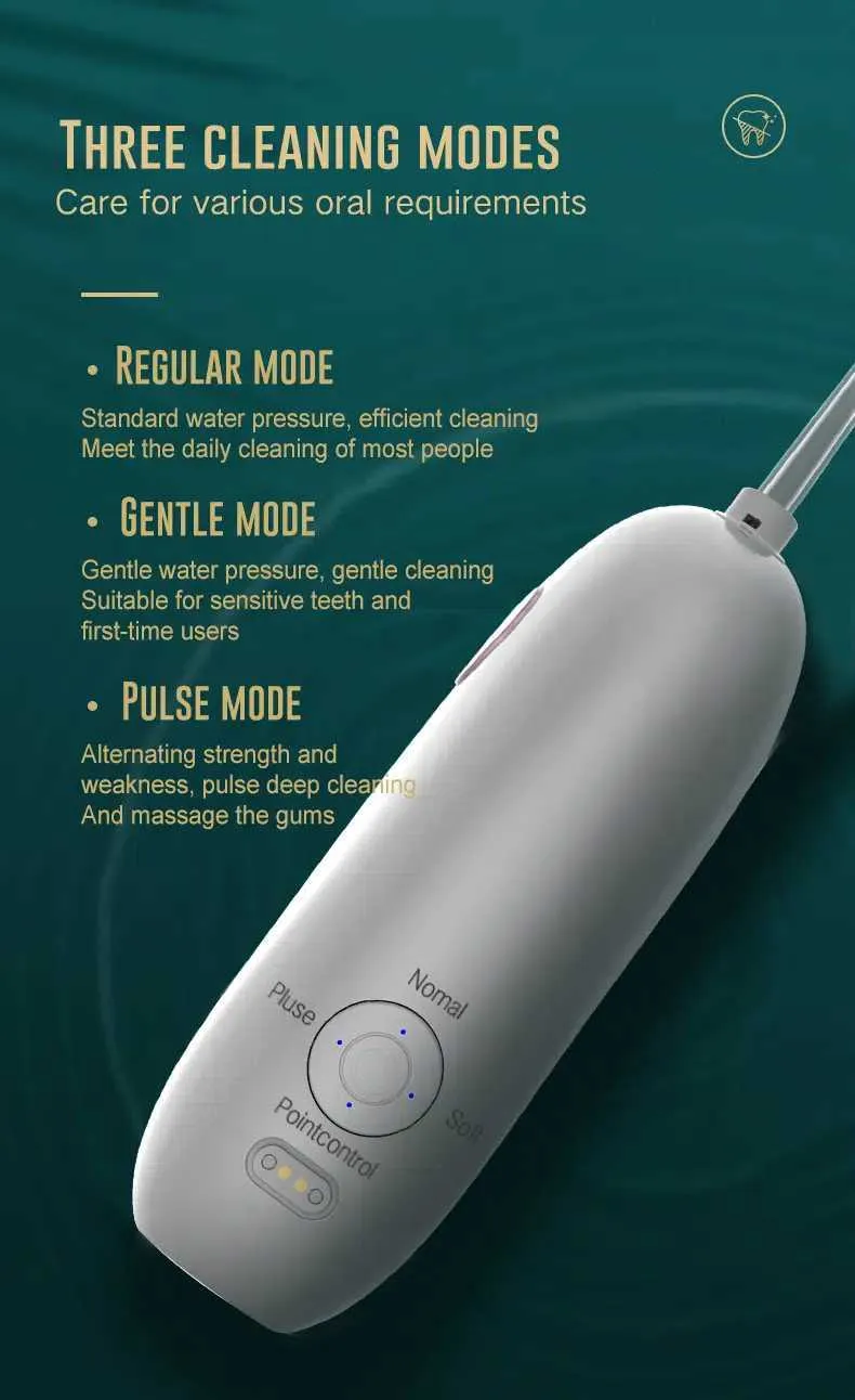 Oral Irrigators Hygiene Water Flosser Portable Dental Irrigator with 3 Modes Rechargeable Waterproof Teeth Cleaner for Home and Travel
